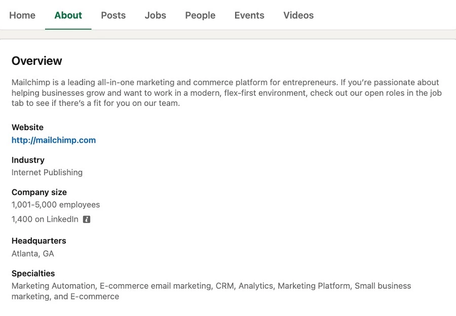 A crucial part of promotion is the About the Company block: tell about the business and product succinctly, attractively, and clearly. Use keywords, but do not forget that you write for people, not search engines. The limit is 2000 characters. Don’t forget to tag the location and put hashtags. Usually, these are the names of industries and specialties.