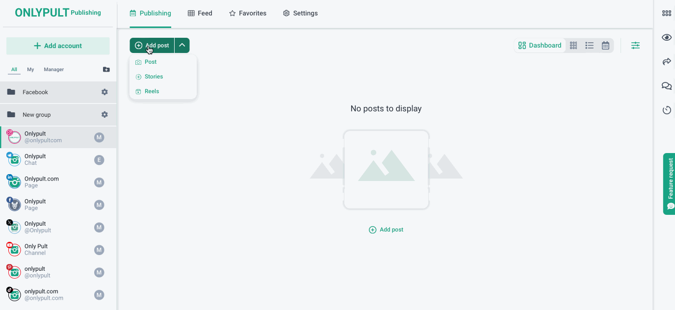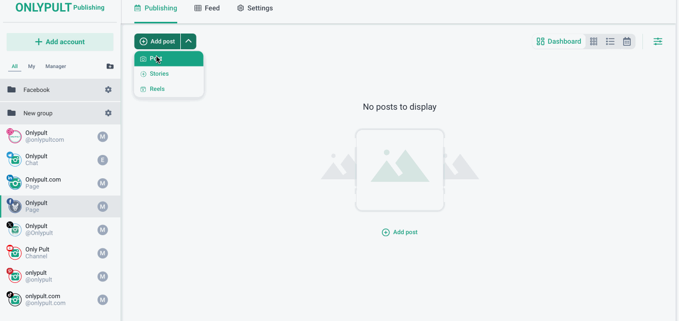 We’ve moved the buttons to switch from one post type to another to the top of the window in front of the posting form. The option is relevant for social networks where you can publish different content, such as Instagram, Facebook, and VK.