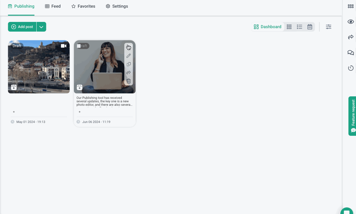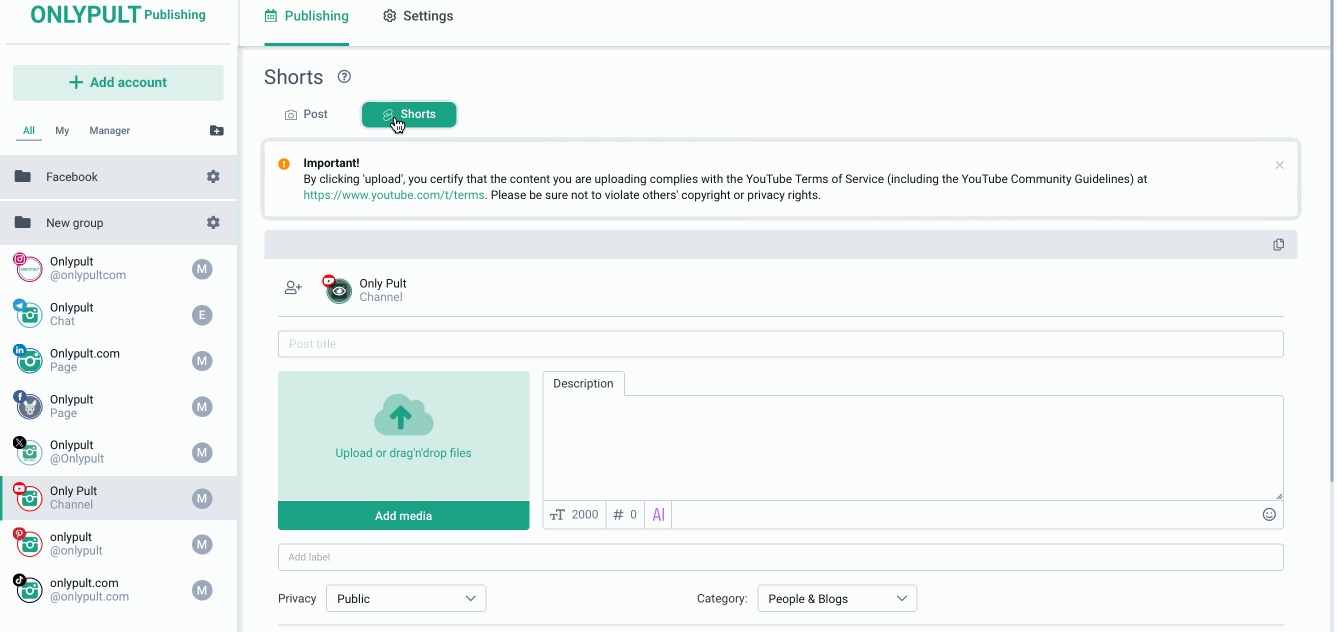 The platform update is already available to our users. New features include switching between post types right in the publishing form, splitting posts into standard and short videos for YouTube, and a few other new features.