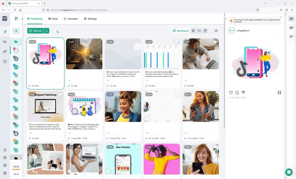 You now have the option to share the post with colleagues and clients by sending them a link. They don’t need to log in to the platform or enter social media passwords.