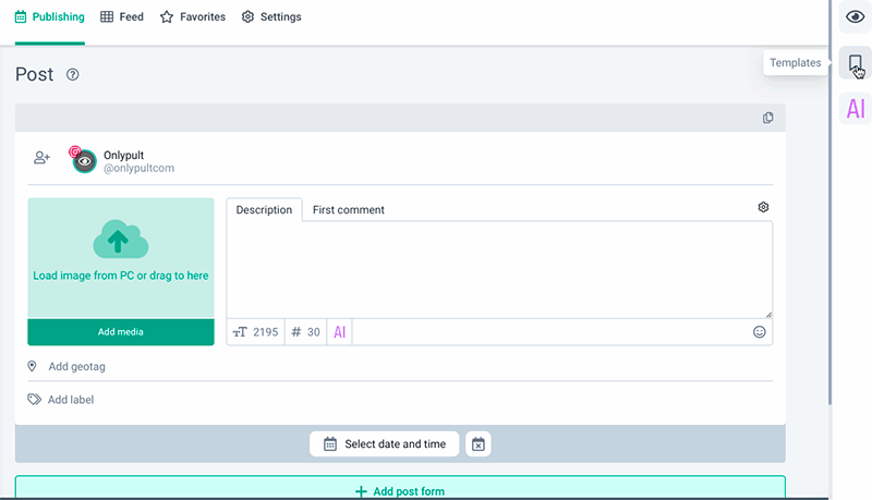 If you want to use the generated text later, click on the star icon in the upper right corner — the text will be saved in Templates.