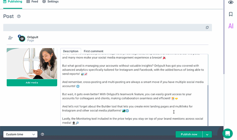 The button is now on the sidebar. Create text immediately in the publication form without getting into templates.