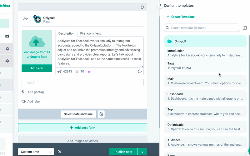 - Replace is a new feature for handling descriptions and first comments in post templates. This option is helpful if you need to replace text in the publication form quickly.