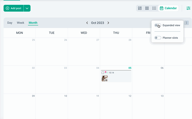 - The ability to add notes. For example, you can add information about an event, promotion launch, or partner integration. It’s very illustrative! The note is placed above the post. An important reminder will always be right in front of your eyes!