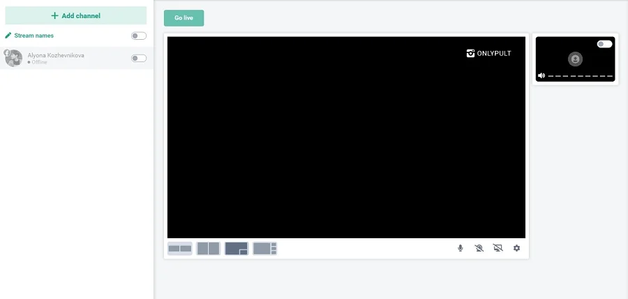 To start streaming, you need to log in to your account on Onlypult or sign up to the platform if you have not done it yet.