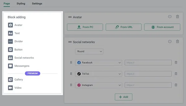 - the Messengers section where you can leave your contact information, so the clients can contact you in the most convenient way;