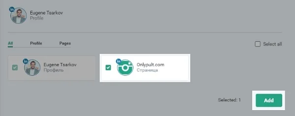 Now using Onlypult, you can publish not only to a LinkedIn profile but also to company pages.
