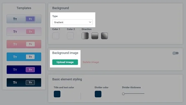 Upload a background image for your page or create a gradient using the colors of your brand – all these features are available for Builder now.
