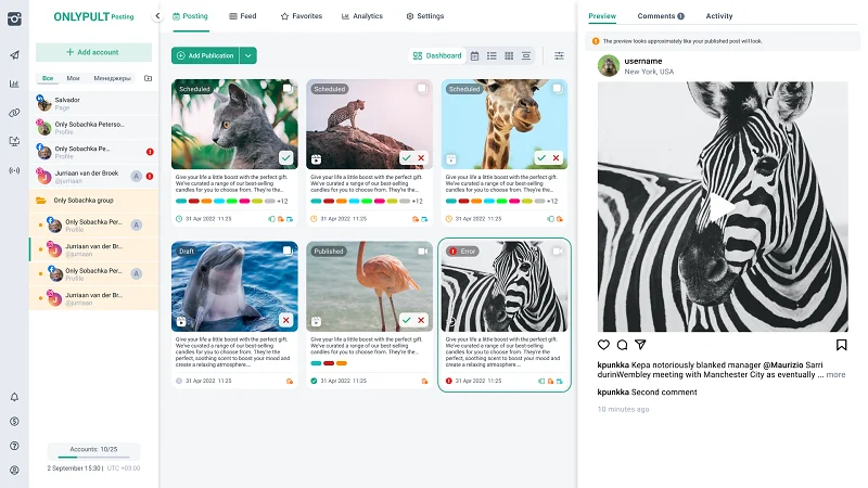 Onlypult is a media platform for bloggers, digital agencies, and businesses that allows you to work with SMM conveniently. On it, you will find scheduling posts, analytics, mini-sites — all social networks in one browser tab. You can work on your own or invite your team to work on the current project.