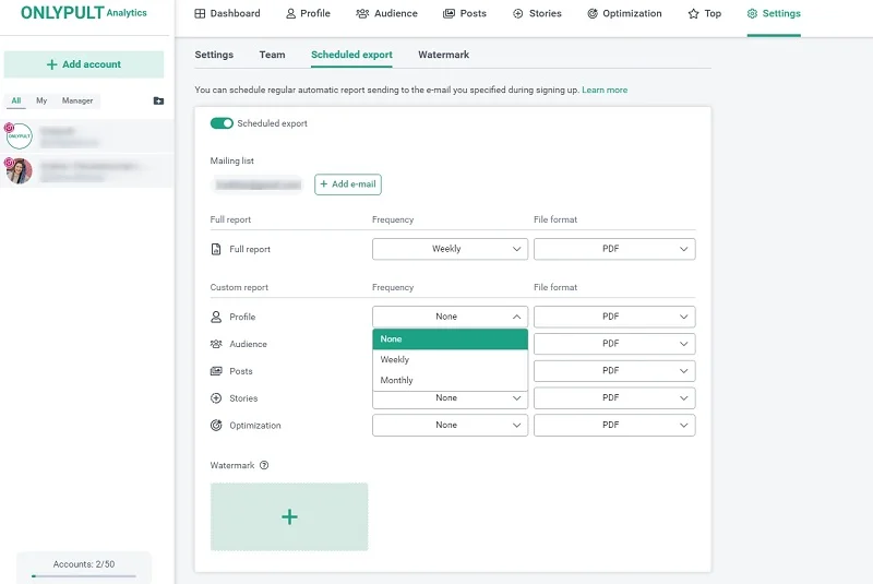 For the convenience of creating reports, Onlypult introduces a new function of branding the exported document.