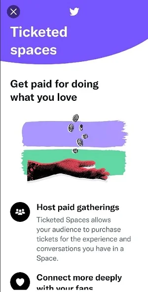 Twitter is introducing an option to sell tickets to followers and make calls using Twitter Spaces. Twitter Space is an audio room where you can discuss questions of interest or listen to an expert’s opinion. That is an excellent opportunity to hold a seminar, to have a live discussion. This option is currently being pre-tested with a limited group of people. Twitter also adds everyone to the waiting list.
