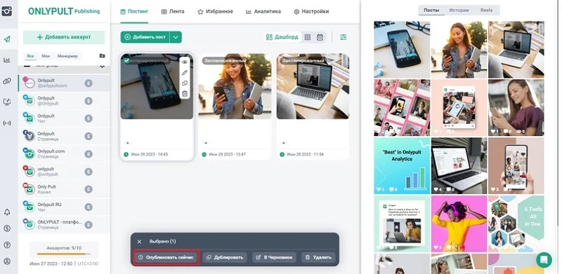 We combined all products into one, and now users can use all Onlypult tools: Publishing, Analytics, Builder, and Monitoring.