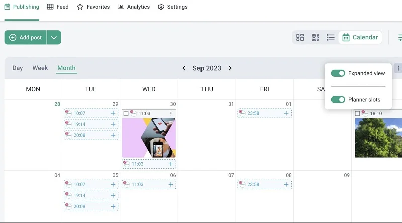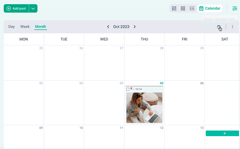 • Creation of a post in one click right in the calendar;