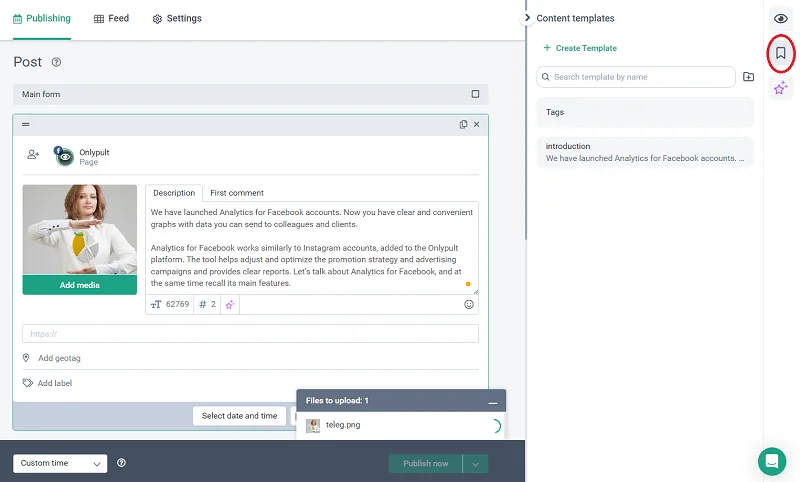 • Post templates speed up post writing, and help you store text results with artificial intelligence. It’s very handy! You can save your text drafts and use them later;