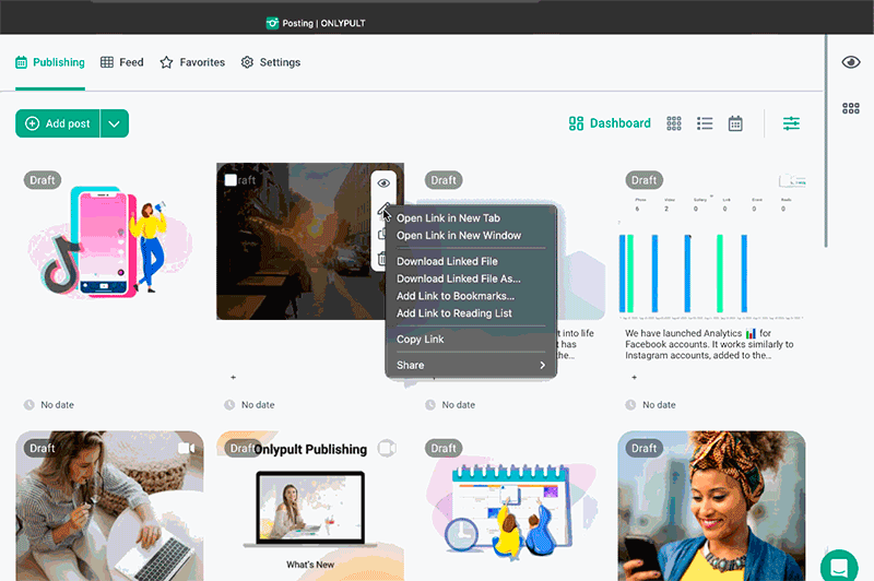 • Mass post actions to copy, delete, and add to Drafts multiple posts at once;