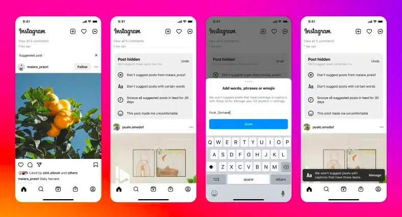 Instagram improves the option to hide comments or direct messages containing particular words. The users can use the Recommendations section to manage it now.