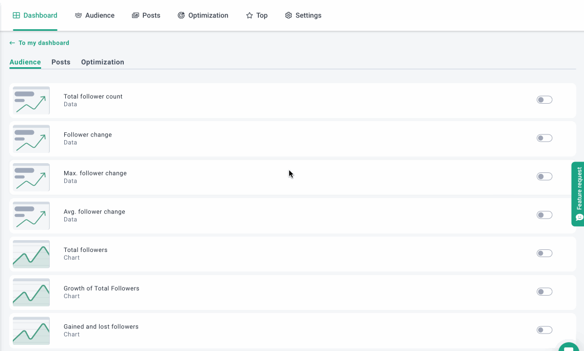 Each section has different metrics, pick the most relevant to you. For example, in the Optimization section, you can track popular hashtags, and choose a good time for posting when the audience is most active. We’ll release new updates soon, and you’ll have even more data to analyze.
