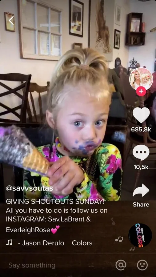Savannah Soutas led an Instagram account for joining TikTok. After she started filming touching music videos featuring her daughter Everley she came over to Youtube.