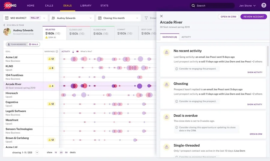 At the stage of lead introduction, there are different stages when a part of the contacts is lost. Gong allows you to study the pattern as the program has search functionality that provides access to phone calls, emails, and any other contact point used by any of the clients.