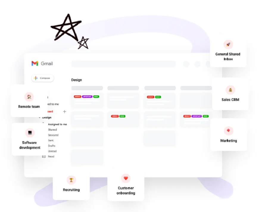 - Arrangement of mails through Kanban boards with the ability to share;