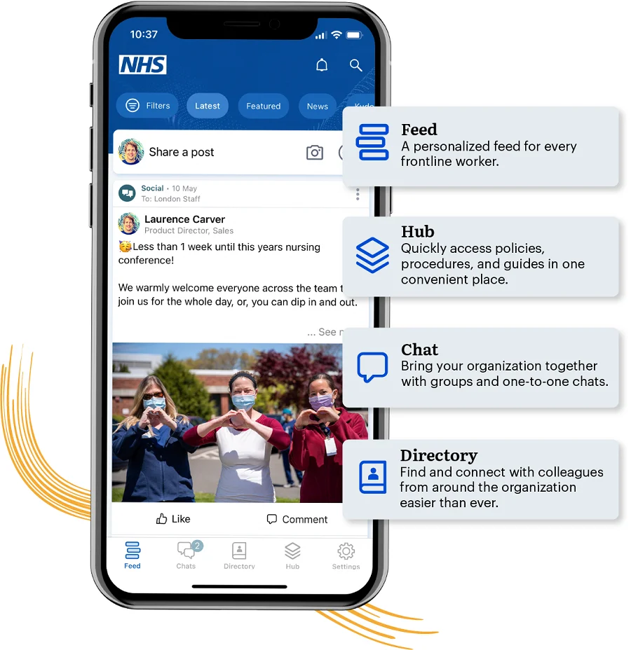 The application implements a Feed that is personalized for each user. The news feed can display messages, documents, videos. The application supports chat between employees and an opportunity to create high-quality text documents.