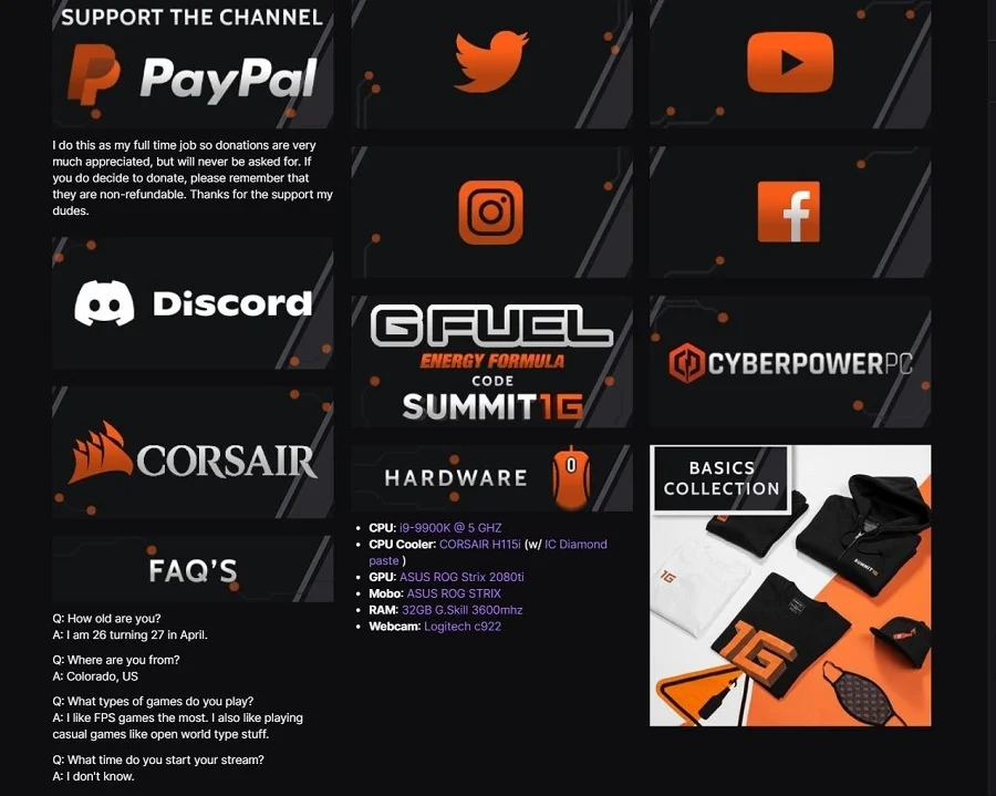 Each streamer is free to choose which panels will be in the profile and their design. The most common panels cover these topics: