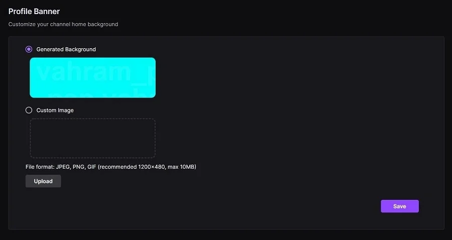 The recommended Twitch banner size is 1200 x 480 pixels (5:2 Aspect Ratio) for HD and Full HD monitors. If the height of the uploaded image isn’t 480 pixels, the banner height will be automatically changed to 480. The file format of Twitch banners must be JPEG, PNG, or GIF, and the size shouldn’t exceed 10MB.