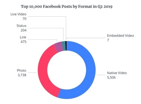 “Native videos”. For Facebook, they are videos uploaded on the platform that the users can view without opening any side platforms. According to the data of the Newswhip service in the second quarter of 2019 popular formats have the following results: