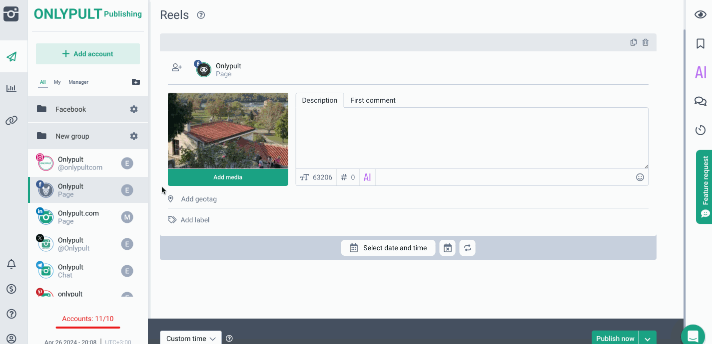 To add a watermark, you need to upload it in the settings of each of your accounts. Please note that the watermark should be in PNG format on a transparent background.
