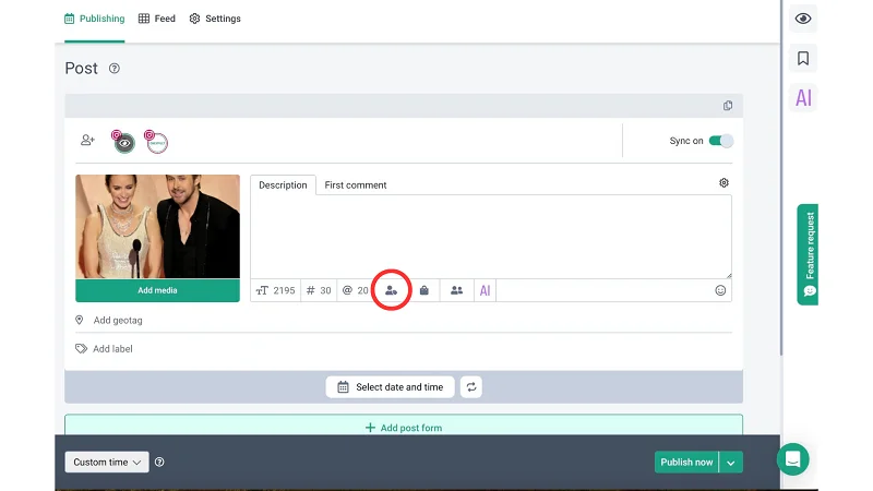Add posts or Reels and tag other users. When creating a post, use the icon with a picture of a man directly in the publication form.