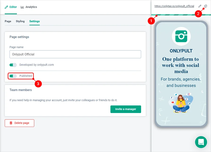 We have redesigned the elements on the right toolbar of the Editor tab and the change saving mechanism of your page. Now every step you take is saved automatically, and you can see it in the preview picture.