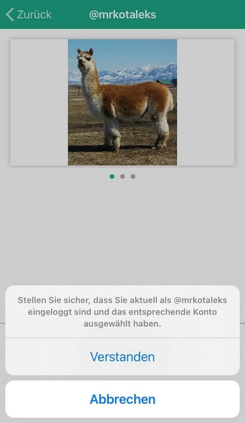 Da Sie einen Beitrag mit einem Foto erstellt haben, wird dieser automatisch auf Instagram veröffentlicht.