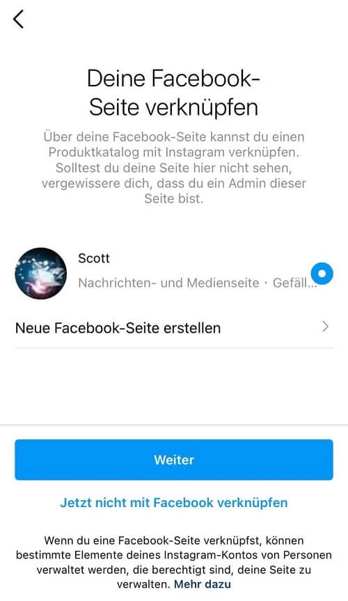 Weitere Informationen zum Verknüpfen eines Kontos finden Sie in den offiziellen Facebook-Anweisungen.