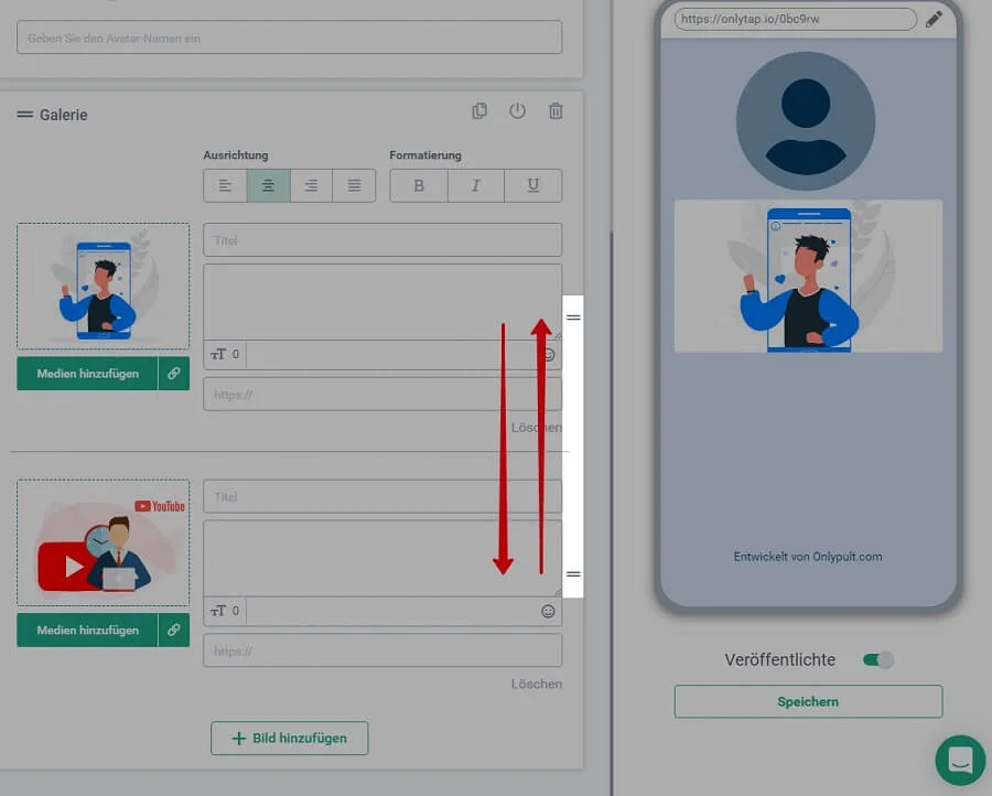 - Möglichkeit, die Reihenfolge der Bilder in der Galerie zu ändern;