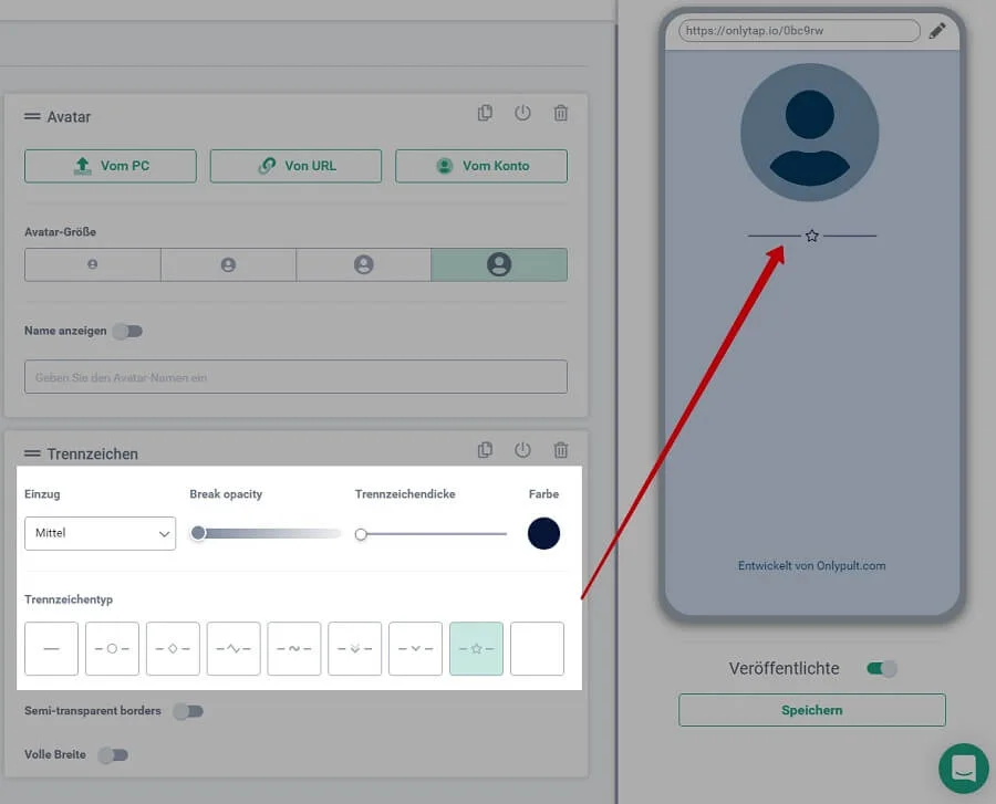 - neue Arten von Trennzeichen, Anpassung der Deckkraft und Dicke das Trennzeichen;