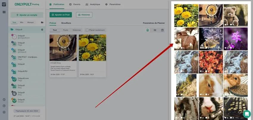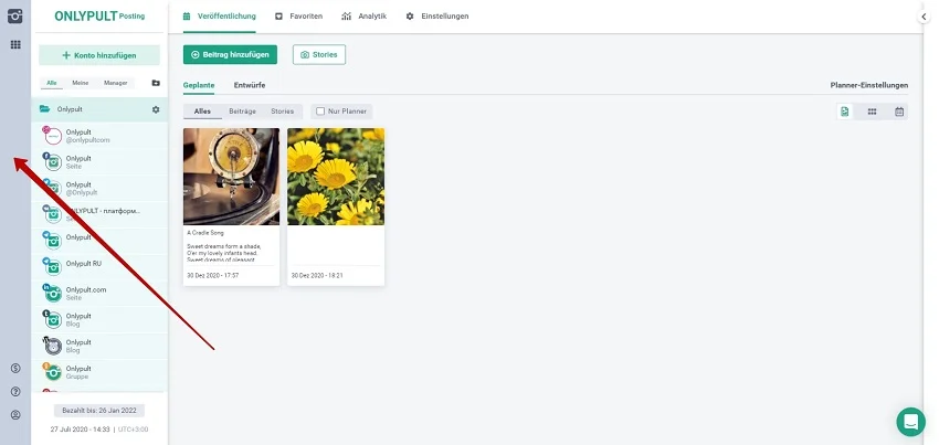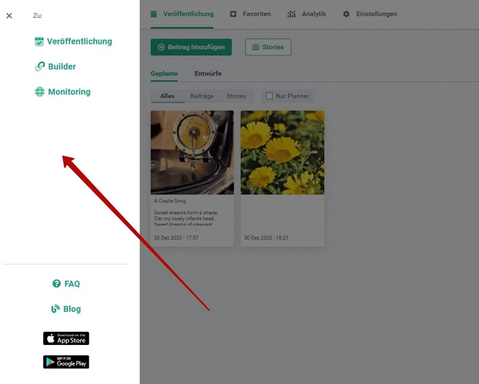 Im neuen Bereich auf der rechten Seite können Sie geplante und veröffentlichte Beiträge anzeigen, aus denen der Feed gleichzeitig besteht.