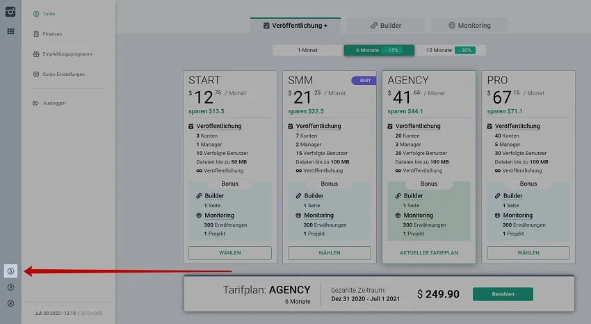 Der Abschnitt Tarife und Zahlung ist jetzt auch Teil des Menüs Kontoeinstellungen.