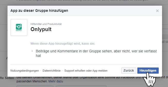 - Geben Sie unsere App in den Facebook-Gruppeneinstellungen an