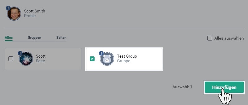 Wenn Sie aus irgendeinem Grund keine Gruppe sehen, die Sie benötigen, prüfen Sie, ob Sie die entsprechenden Rechte für diese Facebook-Gruppe haben.