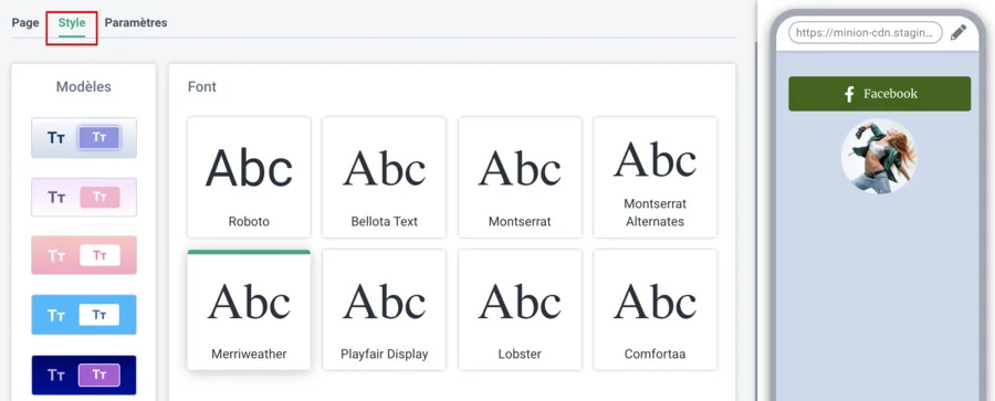 Usted puede personalizar los tipos de letra por estilo y color para toda la página. Elija su tipo de letra favorito, estilo y color de todo el texto y los encabezados.