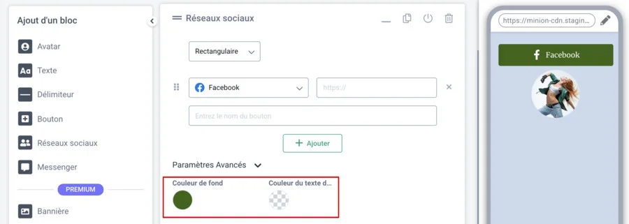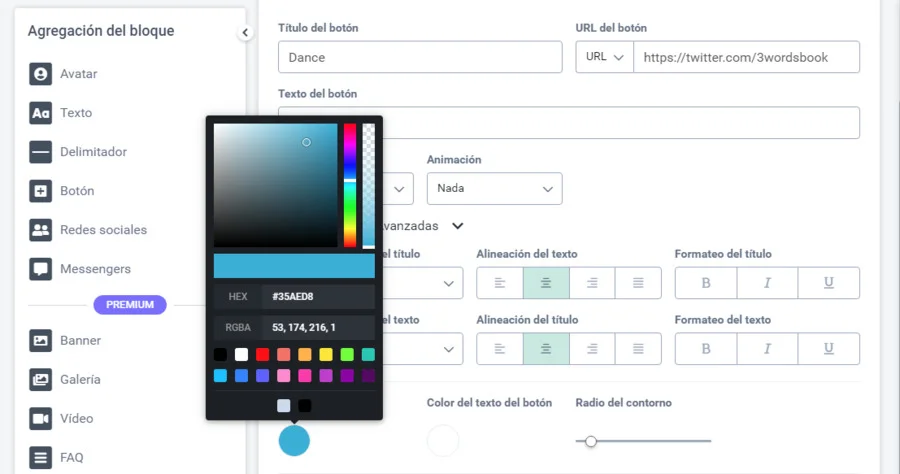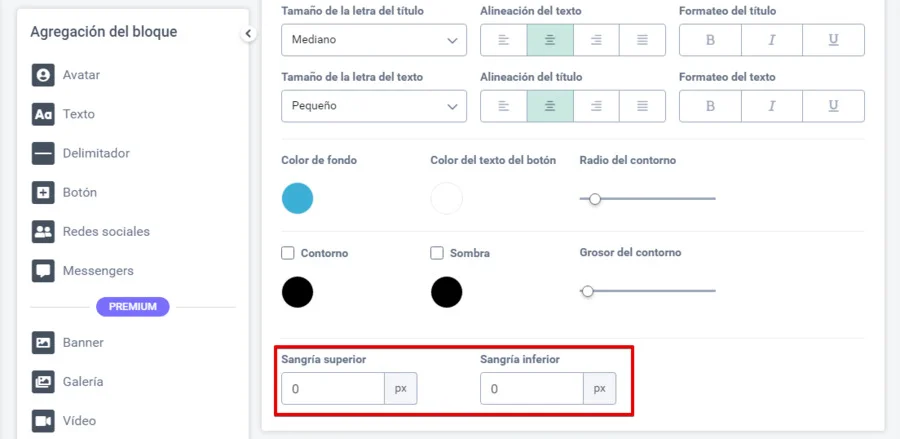 No solo puede ajustar las sangrías de cada unidad, sino que también puede elegir un estilo único para los botones y messengers de redes sociales.
