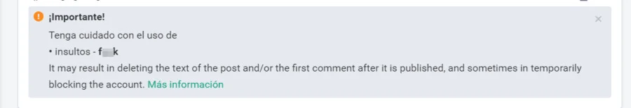 Instagram lucha por un ambiente saludable en su plataforma y aplica medidas contra el odio y los insultos – desde la eliminación de una publicación hasta el bloqueo temporal y la eliminación completa de una cuenta. Nosotros apoyamos este esfuerzo y cuidamos de los usuarios: el texto se revisa para buscar palabras ofensivas, aparece una ventana de advertencia