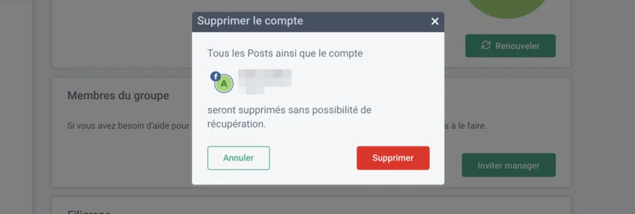 3. Nombre del perfil en la ventana de eliminación de cuentas en redes sociales