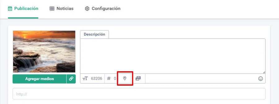 Haga clic en el ícono de ubicación en el formulario al crear publicaciones y seleccione la ubicación deseada.