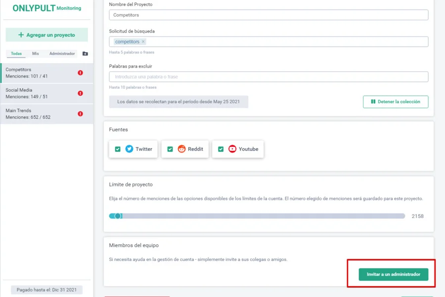 Usted puede dar acceso al administrador para ver los resultados de cualquier proyecto.