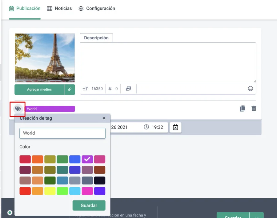 Usted puede asignar una o más etiquetas a cada publicación: póngales un nombre y asigne un color. Así que es más fácil navegar.