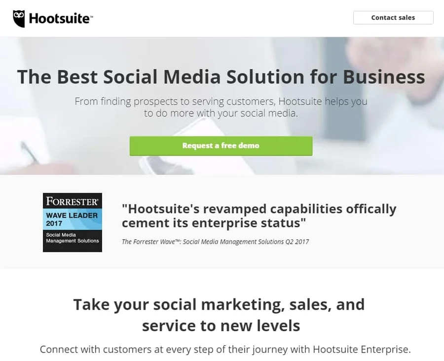 Descripción: Otro gran ahorro de tiempo para los vendedores sociales es HopperHQ. Ofrece funciones de planificación y edición, como publicación automática, colaboración multiusuario y análisis de redes sociales. Es compatible con computadoras de escritorio y dispositivos móviles.