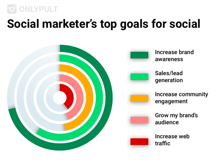 Algunas áreas en las redes sociales son más importantes que otras. Por ejemplo, podría comenzar a trabajar con el reconocimiento de la marca, relaciones públicas, comunidad de defensores, ventas y clientes potenciales, etc. Como administrador, debe decidir en qué objetivos debe enfocarse más. Aquí hay un ejemplo de cómo puede priorizar los objetivos: