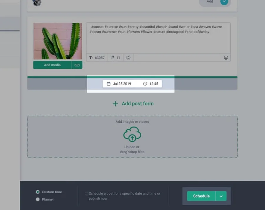 - Haga clic en Agregar publicación y arrastre los archivos que desea programar.