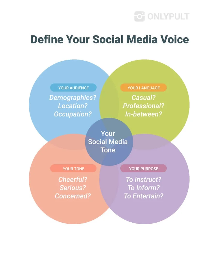 Basado en el análisis de competitividad y las tendencias actuales de las redes sociales, determine su forma de hablar. Se trata del estilo de comunicación personal que utiliza su marca para “comunicarse” con la audiencia. Esto garantizará una reputación uniforme en todos los canales de comunicación.
